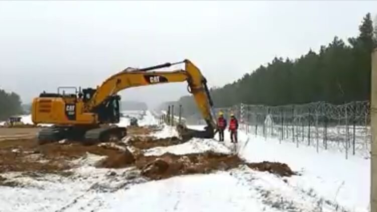 Польша приступила к строительству ограждения на границе с Беларусью. Скрин видео Twitter
