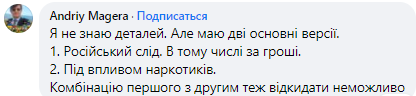 Помимо прочего, уже звучат версии о "российском следе" в убийстве нацгвардейцев. Об этом написала на своей странице в Facebook телеведущая Ольга Лень.