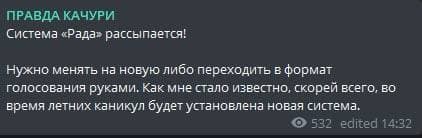 "Нужно менять на новую либо переходить в формат голосования руками. Как мне стало известно, скорей всего, во время летних каникул будет установлена новая система", - написал Качура.