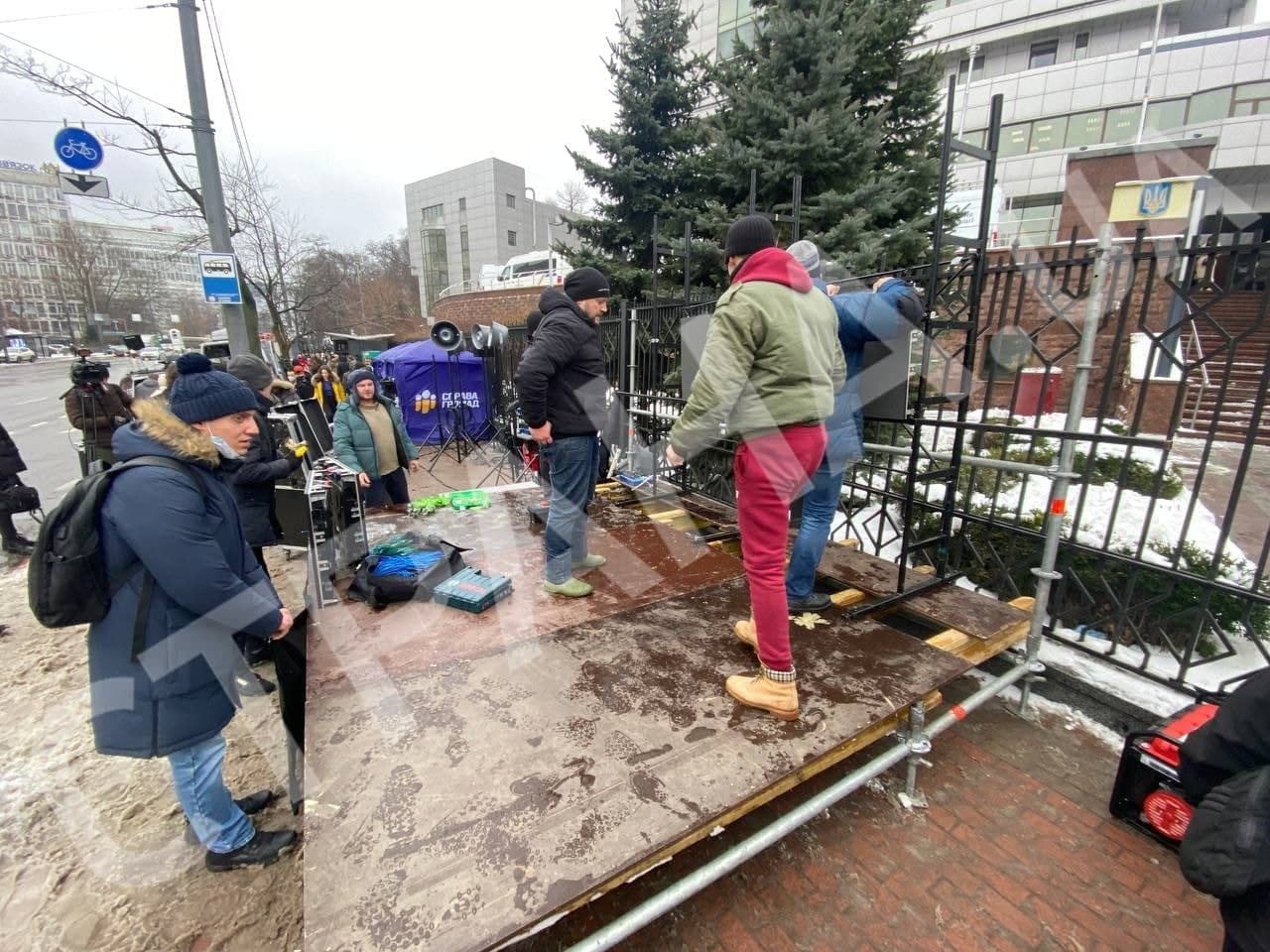 10:25 Сторонники Петра Порошенко собираются возле Киевского апелляционного суда. Они почти закончили монтировать сцену прямо у входа в суд.