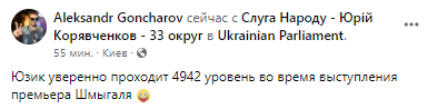 Во время выступления Шмыгаля в Раде "Слуга народа" Юзик на шаг приблизился к 5 000 уровню в мобильной игре