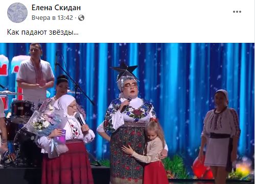Мужик, переодетый в бабу, символизирующую весь кич нашей жизни с серьезным выражением накрашенного лица, поет: "Ми за Україну будем воювати". И сразу же вопрос возникает: кто мы? Переодетые клоуны, которые возвели в ранг глумления жизнь, страдания и смерти наших граждан? Что это было?