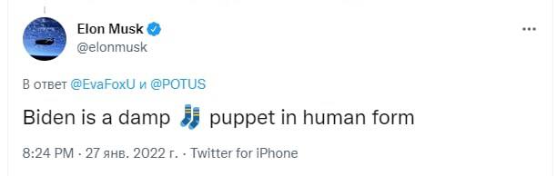 Американский бизнесмен Илон Маск обрушился серией гневных постов в адрес президента США Джой Байдена в Twitter.