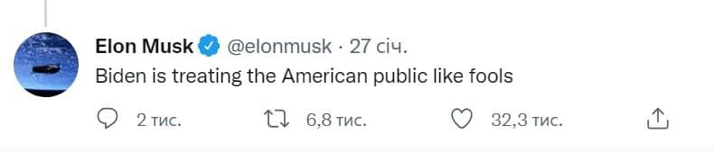 Маск также обвинил Байдена, что тот держит жителей США "за идиотов".