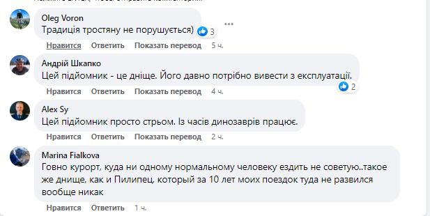 В комментариях к публикации ГСЧС в Facebook несколько пользователей пожаловались на то, что подъемник в этом месте, мягко говоря, уже старый и не должен использоваться.