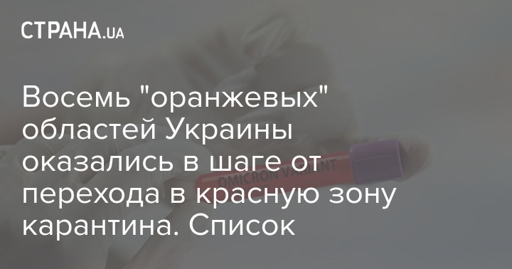 Сразу в восьми областях Украины, которые на данный момент находятся в оранжевой зоне, в течение трех дней превышены не менее двух ковид-показателей, из-за этого регионы уже в ближайшее время могут перевести в красную зону карантина.