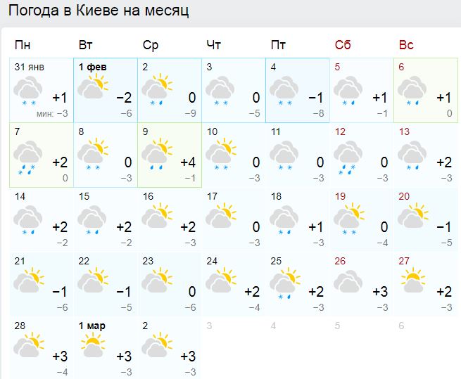 Прогноз погоды в Киеве в феврале от Gismeteo
