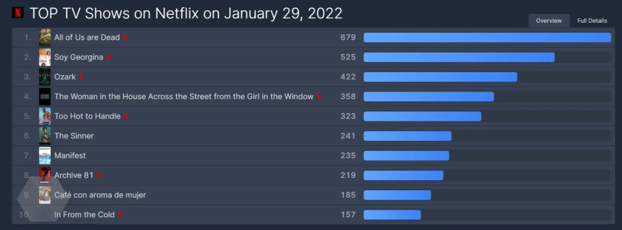 Шоу вышло 28 января и уже на следующий день возглавило мировой чарт сериалов на Netflix. До этого подобный успех среди корейских сериалов был только у "Игры в кальмара".