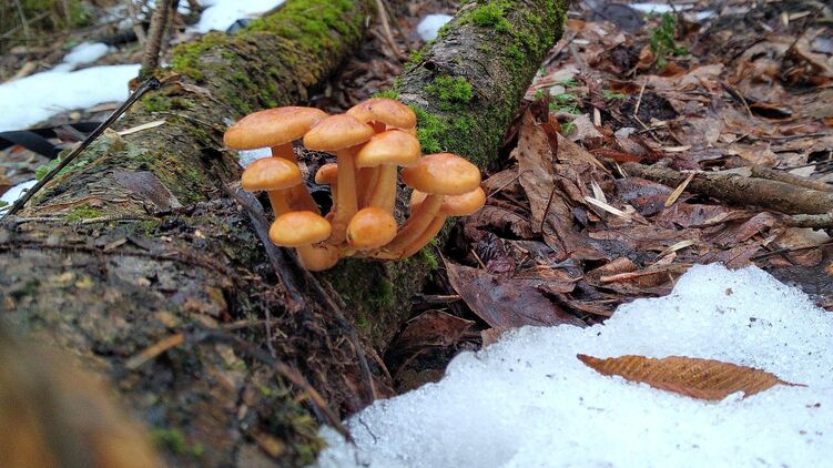 Сотрудники Чернобыльского радиационно-экологического биосферного заповедника в зоне отчуждения ЧАЭС поделились фотографиями грибов, выглядывающих из под снега.
