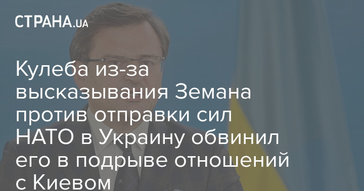 Кулеба из-за высказывания Земана против отправки сил НАТО в Украину обвинил его в подрыве отношений с Киевом