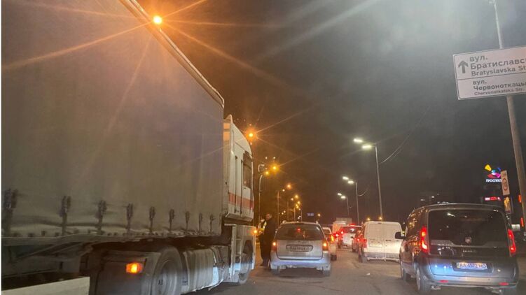 На Левом берегу Киева два ДТП с участием фур. Движение транспорта заблокировано. Фото