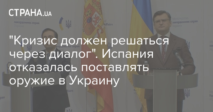Министр иностранных дел, ЕС и сотрудничества Испании Хосе Мануэль Альбарес Буэно заявил, что его страна не будет поставлять оружие Украине, так как в настоящее время нужно сосредоточиться на дипломатических способах решения кризиса.