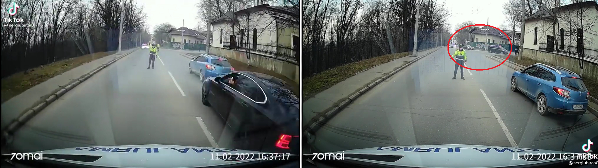 "Скорая" с включенными сиренами и мигалкой, которая, вероятно, спешила на вызов, однако были остановлена полицейский. После того, как "карета" медиков остановила, на перекрестке проехала колонна румынских министров, которые спешили на совместное заседание со своими молдавскими коллегами.