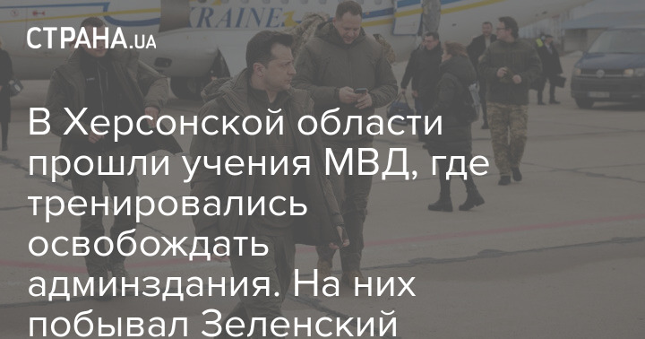 В Херсонской области прошли учения МВД, где тренировались освобождать админздания. На них побывал Зеленский