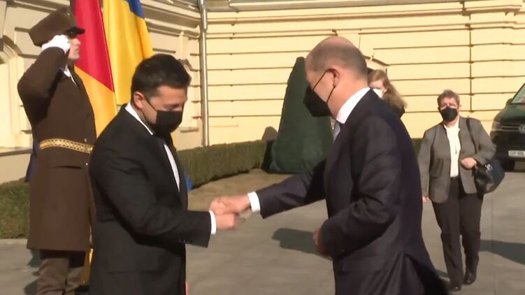 Сегодня, 14 февраля, в Киев с визитом приехал канцлер Германии Олаф Шольц. Он уже прибыл в Мариинский дворец, где его встретил президент Украины Владимир Зеленский.
