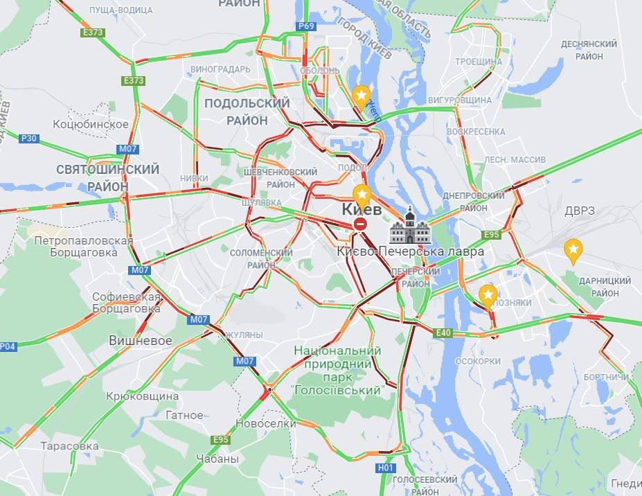 В подтверждение утренней информации "Страны" о том, что жители Киева не особо верят в "нападение Путина" и не торопятся эвакуироваться из города вслед за западными посольствами. К вечеру Киев сковали серьезные пробки.