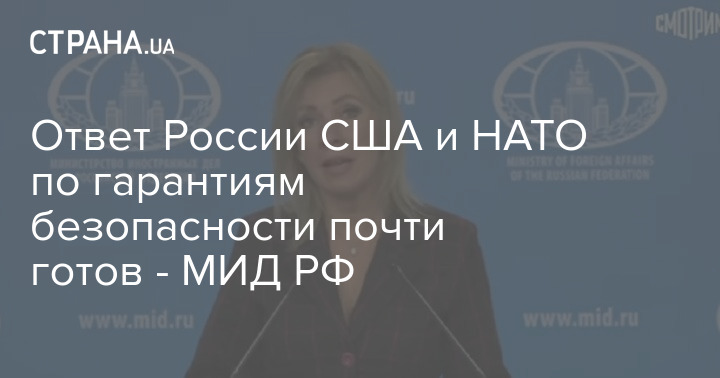 В Министерстве иностранных дел России заявили, что подготовка ответов РФ по гарантиям безопасности на предложения США и НАТО находятся на финальной стадии.