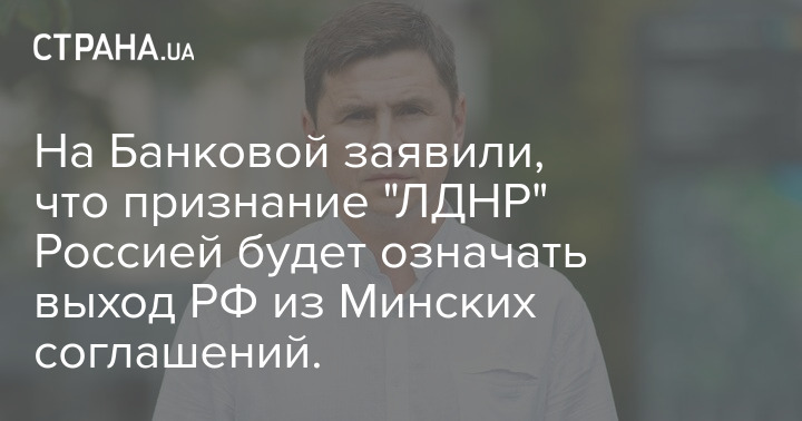 Советник главы Офиса президента Михаил Подоляк заявил, что признание "ЛДНР" Россией будет означать выход РФ из Минских соглашений.
