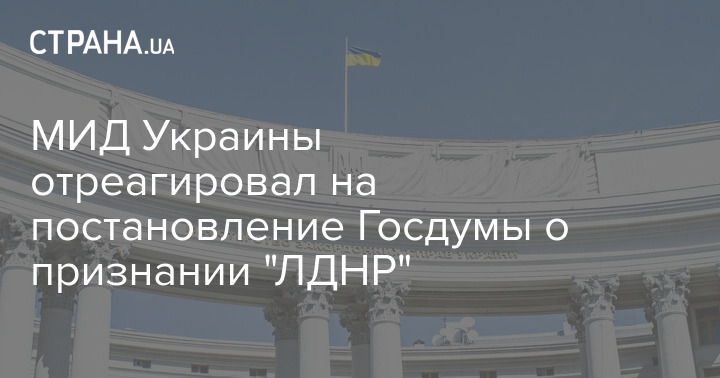 В Министерстве иностранных дел Украины отреагировали на принятие Госдумой РФ постановления о признании "ЛДНР" и, вслед за Офисом президента, заявили, что признание Россией "республик" будет означать ее сознательный выход из Минских договоренностей.