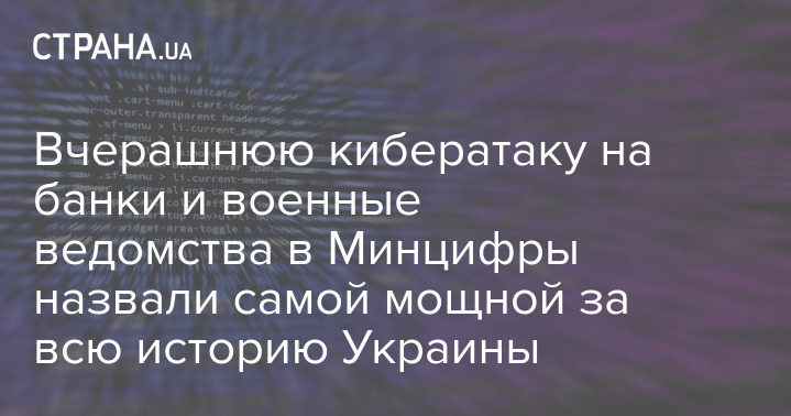Вчерашнюю кибератаку на банки и военные ведомства в Минцифры назвали самой мощной за всю историю Украины