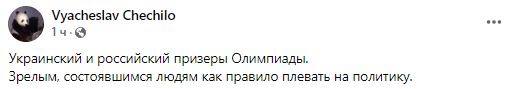 "Украинский и российский призеры Олимпиады. Зрелым, состоявшимся людям как правило плевать на политику", - прокомментировал дружеские объятия спортсменов Журналист Вячеслав Чечило.