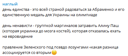 "день единства - это всей страной радоваться за Абраменко и его единственную медаль для Украины на олимпиаде