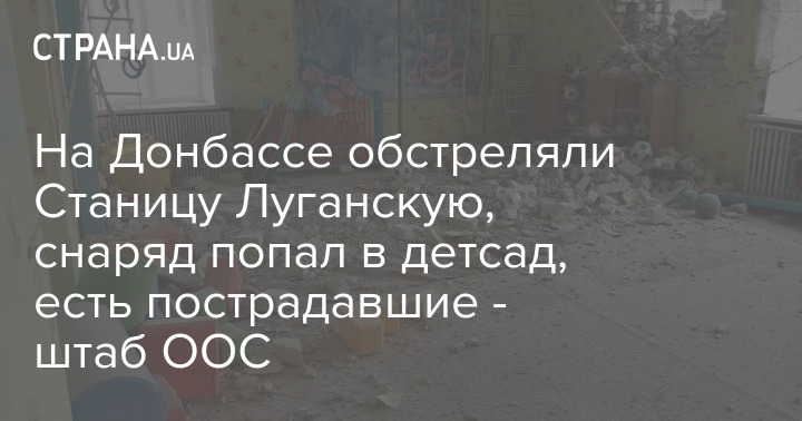 В штабе ООС заявляют, что один из снарядов попал в детский сад в Станице Луганской. Согласно предварительным данным, ранения получили два мирных жителя. Украинские военные эвакуировали людей в убежище.