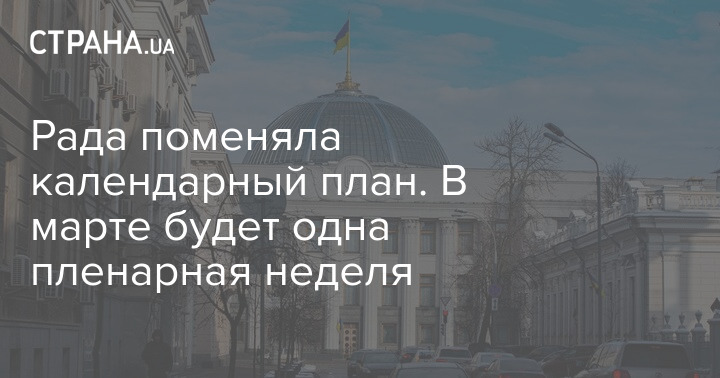 Согласно измененному календарному плану Рады, следующая неделя будет пленарной. А вот в марте будет только одна пленарная неделя, ею станет вторая неделя месяца. При этом целых две недели марта отведены для работы народных депутатов с избирателями, а еще две - для работы в комитетах, специальных группах, депутатских группах и фракциях и следственных комиссиях.