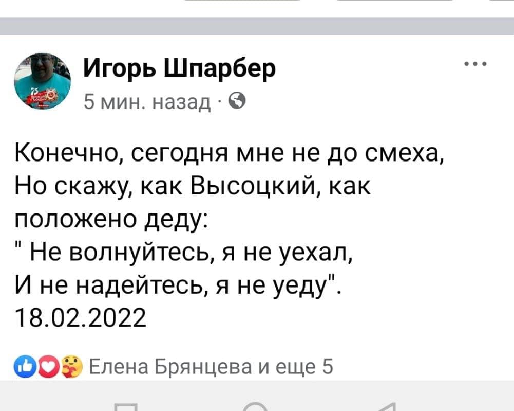 Многие цитируют строки из Высоцкого: "Не волнуйтесь, я не уехал. И не надейтесь, я не уеду".