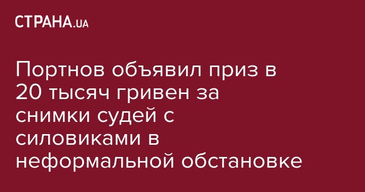 Портнов пообещал выплачивать 20 000 гривен за каждый фотоснимок (или, очевидно, скриншот с видеозаписи) на котором будут запечатлены судьи любого из киевских судов, встречающиеся в не рабочем порядке (неофициальной обстановке) с сотрудниками правоохранительных органов (НАБУ, ГПУ, САП, СБУ или МВД).