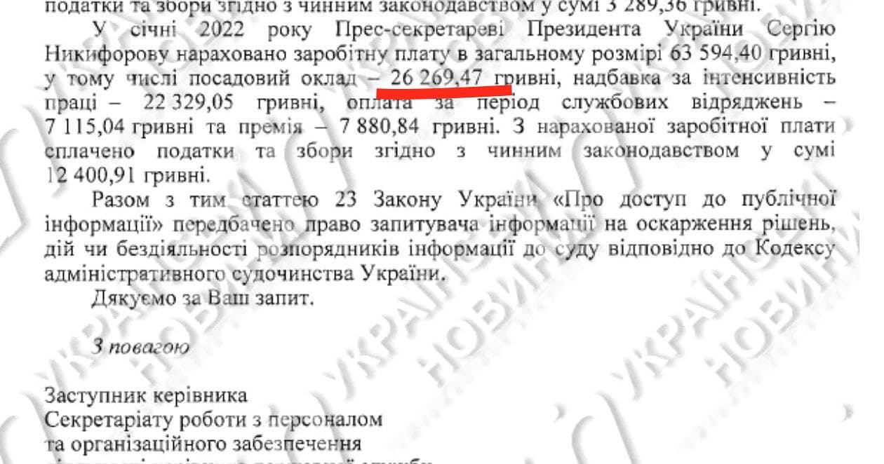 В январе пресс-секретарь президента Украины Сергей Никифоров получил зарплату в два раза больше, чем сам Зеленский.
