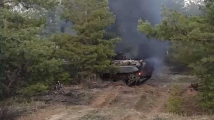 Видео горящей боевой машины пехоты "украинской ДРГ". Скриншот видео