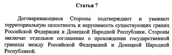 В статье 7 договора говорится, что стороны "подтверждают и уважают нерушимость существующих границ".