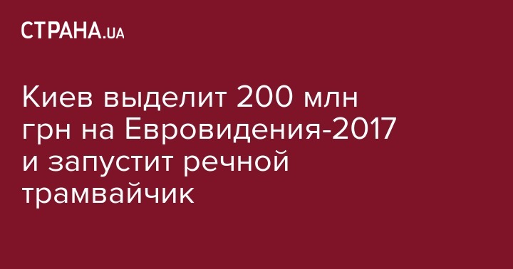 Киев выделит 200 млн грн на Евровидения-2017 и запустит речной трамвайчик