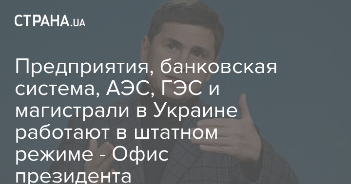 В Офисе президента заявили, что предприятия и банковская система, а также АЭС, ГЭС и магистрали работают в штатном режиме.