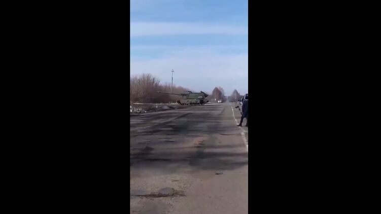 Очевидцы засняли, как колонна бронетехники, которой, по их словам, "не видно конца" и которая, как заявляется, едет в сторону Киева.