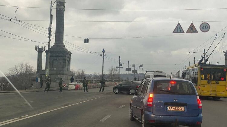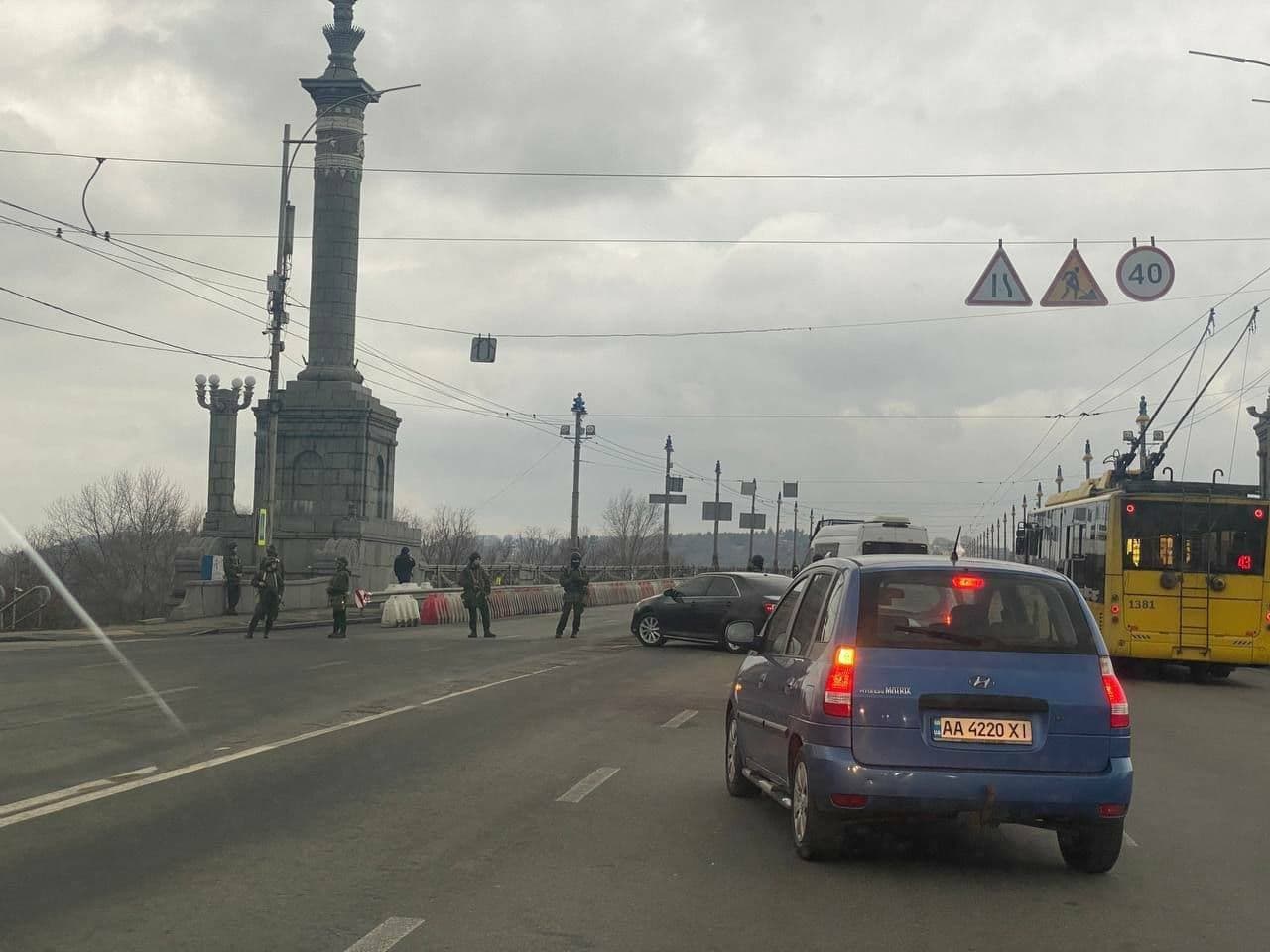В четверг, 24 февраля, в Киеве, где ранее объявили воздушную угрозу, перекрыли мост Патона через Днепр.