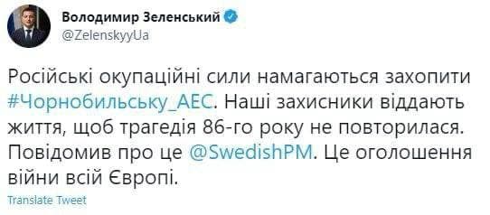 Российские войска пытались захватить Чернобыльскую АЭС. Эти действия Зеленский назвал оглашением войны всей Европе.