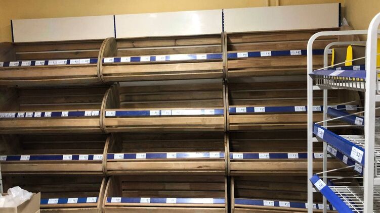 Появились фото продуктовых магазинов Киева, в которых размели хлеб и воду