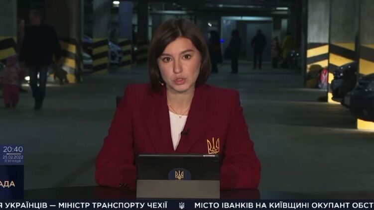 По словам телеведущей, журналисты вынуждены вести эфир в новых реалиях. "Еще раз хочу вам сообщить, что в настоящее время мы ведем свой эфир с по сути бункера, потому что условия такие сложились. В Украине война, в Киеве, я уверена, что и в других городах (мы об этом сообщаем) звучат тревожные сирены, поэтому люди вынуждены просто прятаться где-то. Прятаться от того, что происходит в стране, от агрессии российской, от Владимира Путина, от его войска", - сказала ведущая, сидя за столом в подземном паркинге.