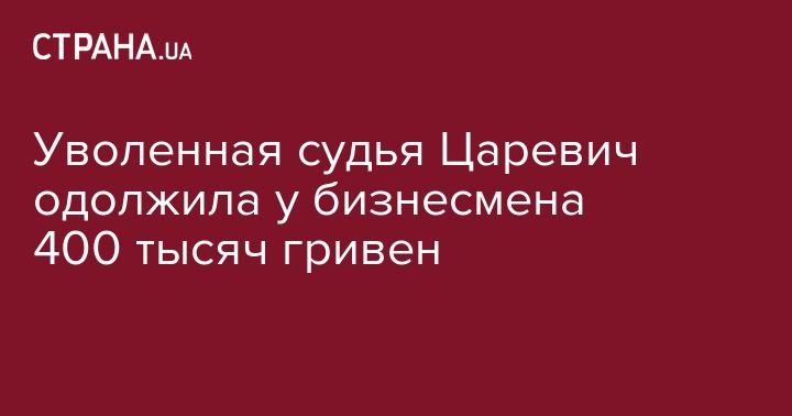 Уволенная судья Царевич одолжила у бизнесмена 400 тысяч гривен