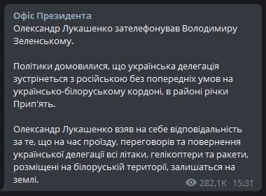 2. Лукашенко сам предложил организовать встречу с российской делегацией на границе Беларуси и Украины.