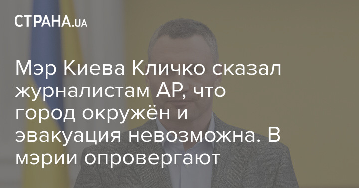Мэр Киева Кличко сказал журналистам AP, что город окружён и эвакуация невозможна. В мэрии опровергают