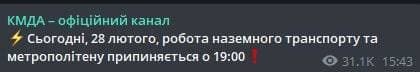 07:27  Киевская мэрия сообщает, что с 8 часов утра можно уже выходить на улицу, будут открыты магазины и заработает метро (правда, поезда будут ходить реже).