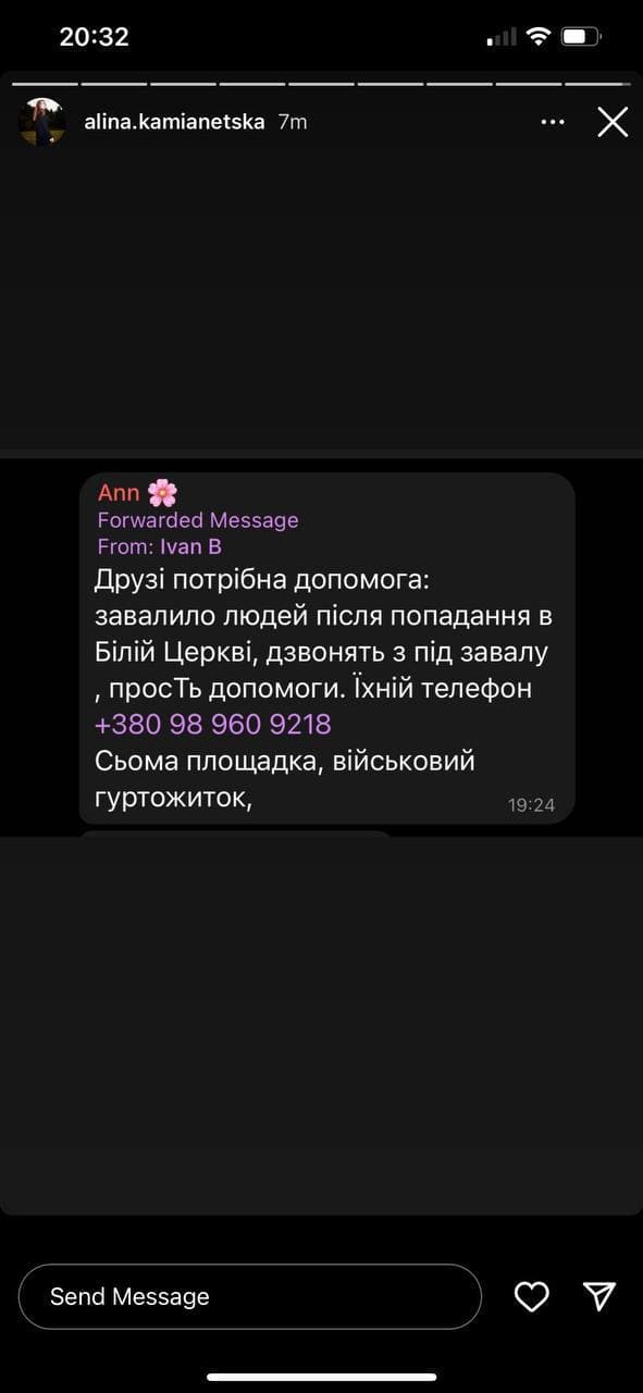 20:34 Пишут по двум ударом по Белой Церкви. Люди просят о помощи.