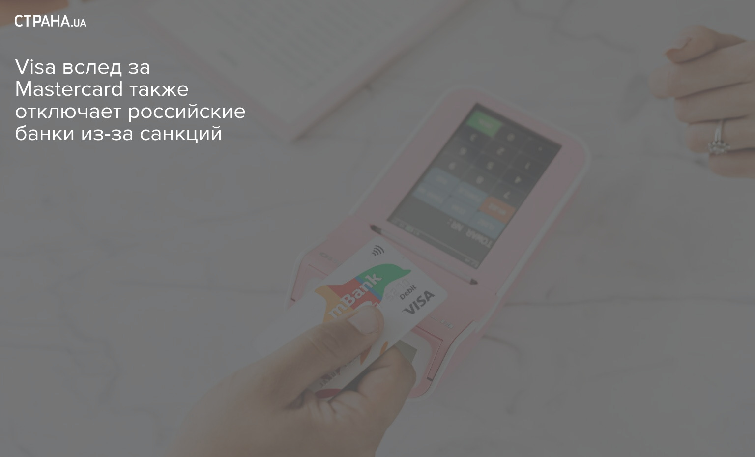 Международная платежная система Visa вслед за Mastercard отключает российские банки из-за санкций.
