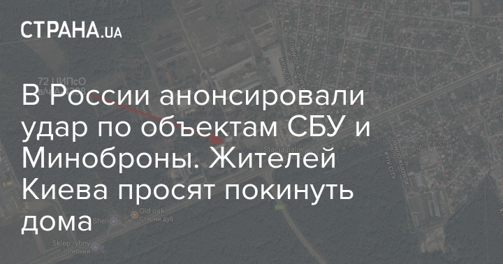 Под удар попадут объекты СБУ и 72-го Главного центра ПСО (центр Психологических операций, относится к Минобороны) в Киеве. "Минобороны призвало жителей Киева, проживающих рядом с ретрансляционными узлами, покинуть свои дома", - говорится в сообщении.