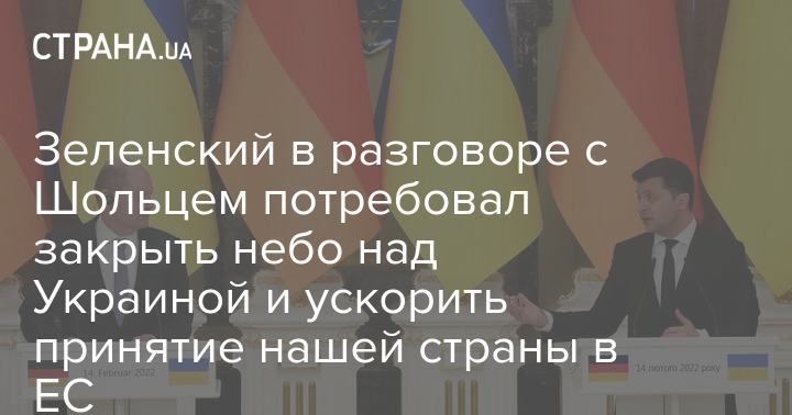 Президент Украины Владимир Зеленский в телефонном разговоре с канцлером ФРГ Олафом Шольцом сделал акцент на том, что жилые кварталы украинских городов были обстреляны Россией во время переговоров, подчеркнул, что необходимо закрыть небо над Украиной, а также акцентировал на ускорении принятия нашего государства в ЕС.