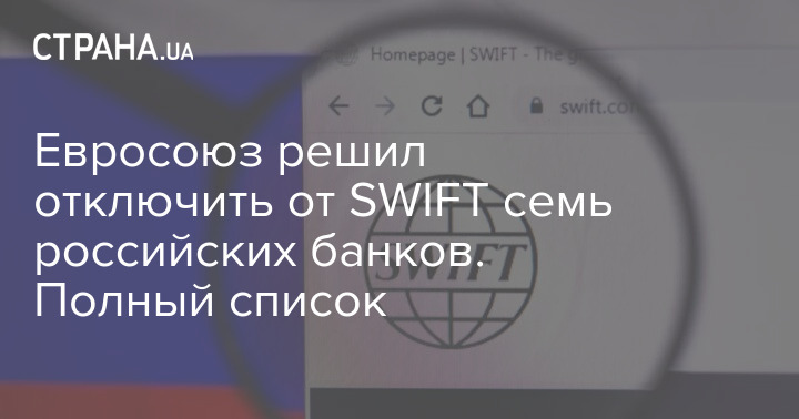 В Евросоюзе приняли решение отключить от SWIFT семь российских банков.