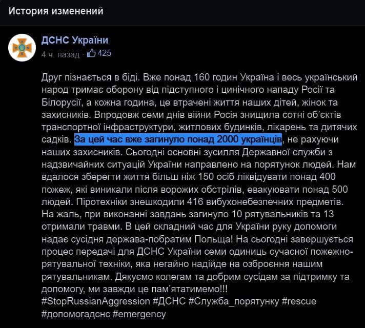 В ГСЧС удалили сообщение о двух тысячах погибших украинцах